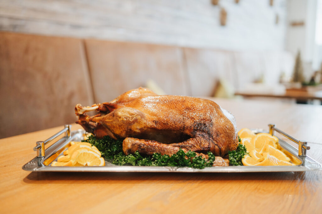 Unsere knusprig gebratene Ganze Gans ist auch dieses Jahr wieder da: